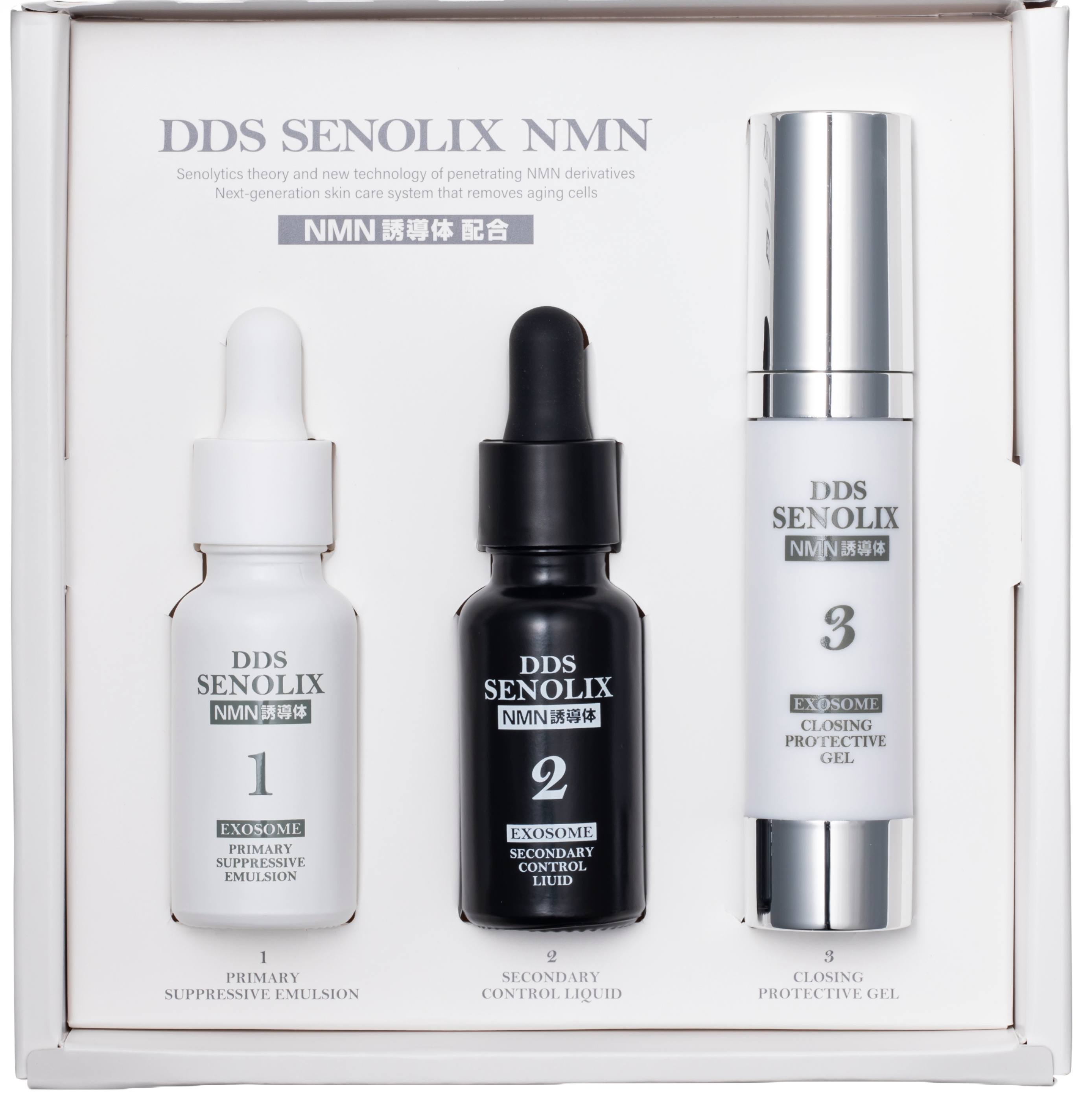 私たちはセノリティクス理論をスキンケア・ヘアケアに応用し、セノリティクス成分を段階的に肌へ浸透させることで、肌のコンディションを整える新発想のエイジングケア「DDS SENOLIX NMN」を開発しました。