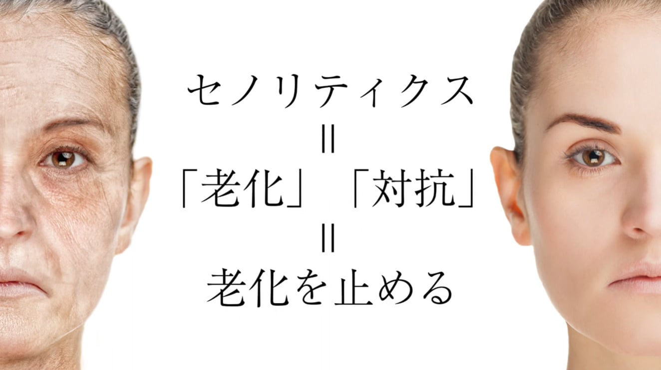 セノリティクスとは、老化を意味する「senescence」と、対抗を意味する「lytics」を合わせた文字通り老化を止めるといった言葉です。